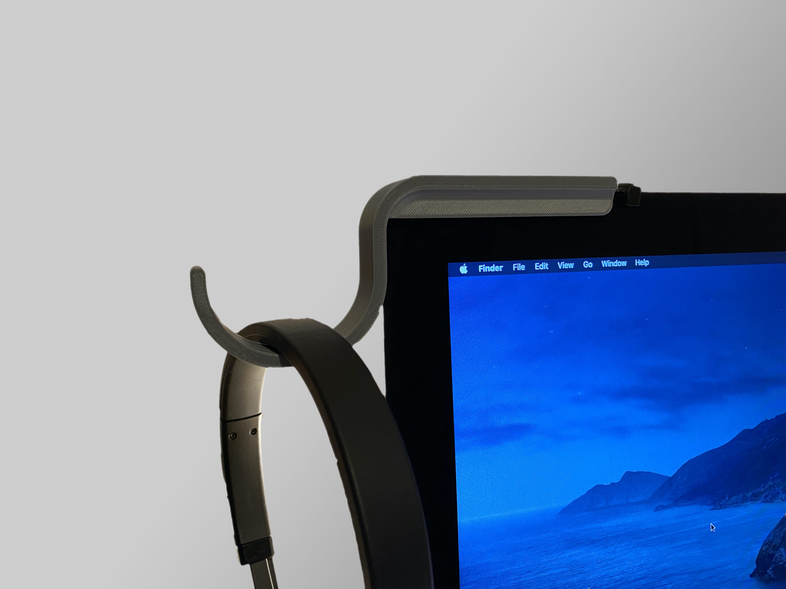 This is a very simple print. To attach to the monitor, I used some double sided tape on the inside of the mount. The mounts fits almost perfectly on the screens rounded corner. This design is intended to be mounted on the left hand side of the monitor.